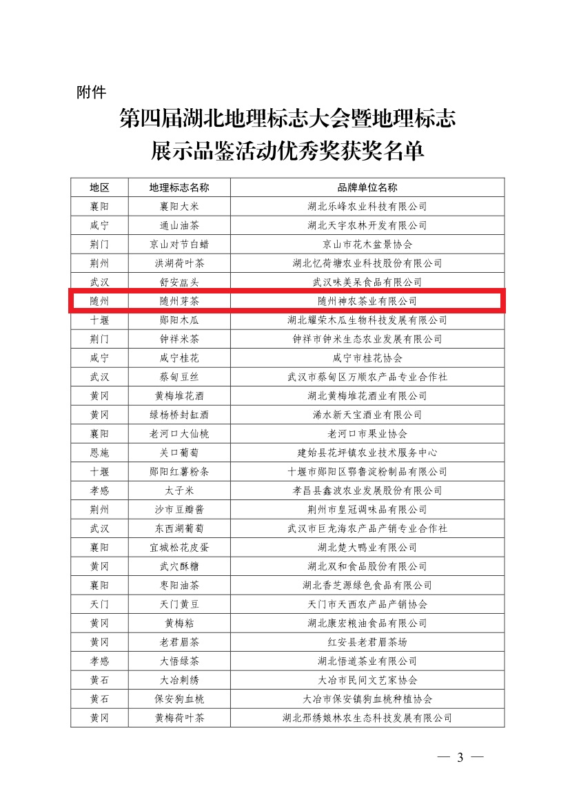 随州芽茶获第四届湖北地理标志大会暨地理标志展示品鉴活动优秀奖