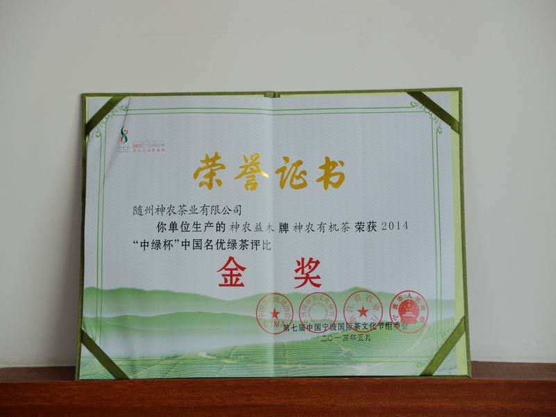 神农有机茶喜获本届“中绿杯”中国名优绿茶评比“金奖”