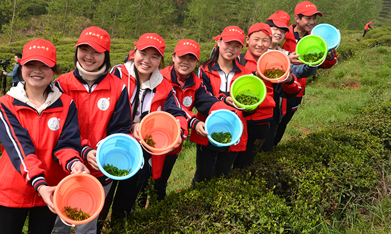 4月11日,在新建的游客中心即将开业之际,云峰山万亩茶园风景区迎来了今年第一个上千人的研学旅行团队。