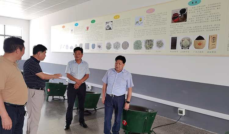 六月十八号市委组织部副部长、市人社局局长刘熙发一行到随州市神农茶业集团调研职业技能培训工作,县人社局局长张成志及有关领导陪同调研。