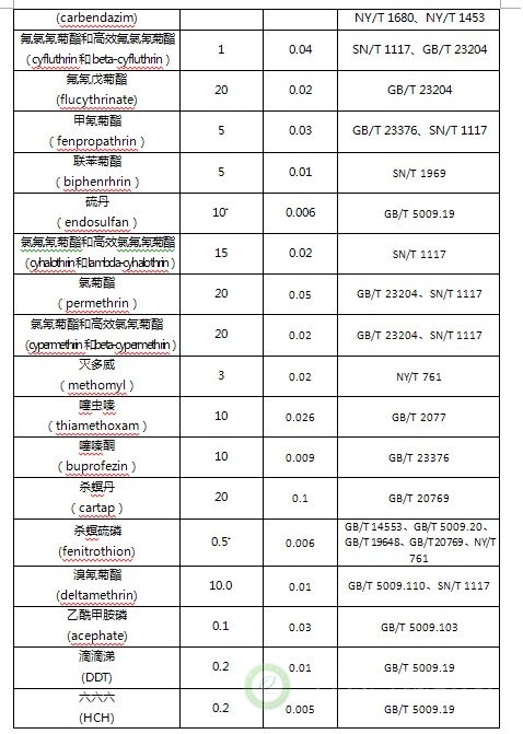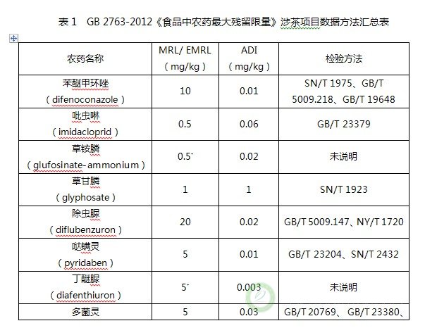 表1GB2763-2012《食品中农药最大残留限量》涉茶项目数据方法汇总表