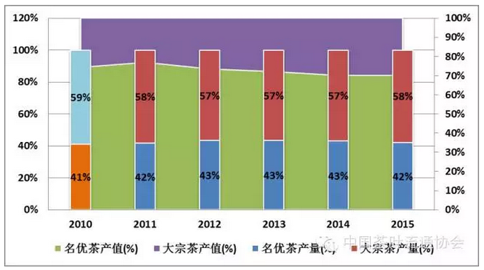 图5 “十二五”期间我国大宗茶与名优茶结构变化