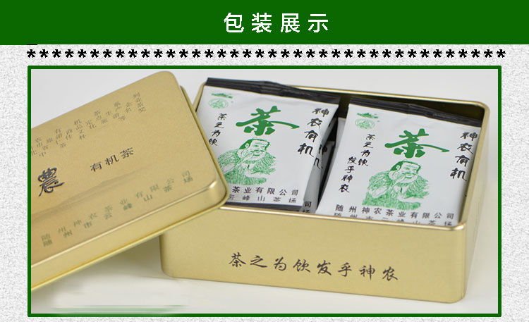 此款产品属公司开发的旅游产品,携带方便,包装精美、安全、卫生,饮用方便,此包装为神农有机茶系列,可装以下三种产品: